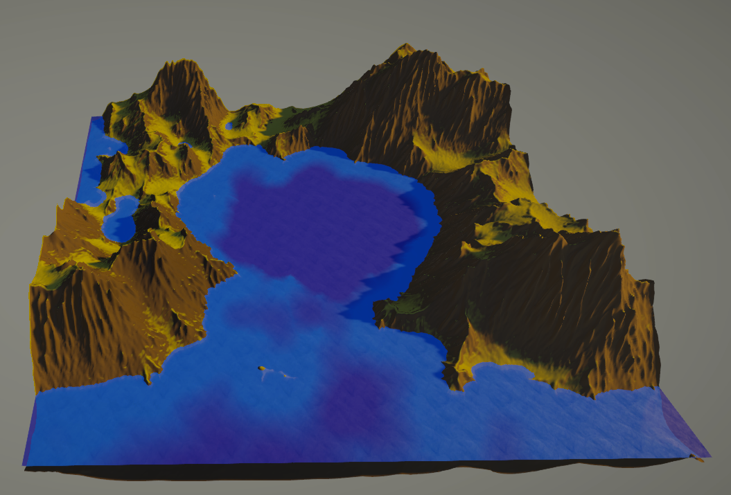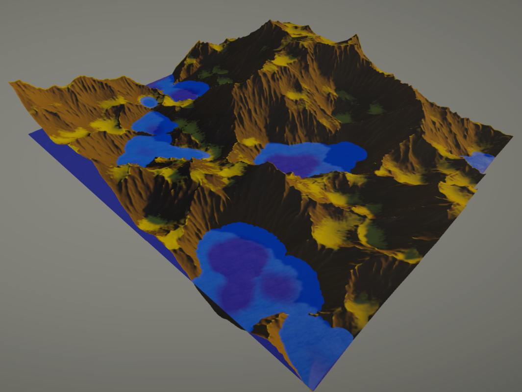 This project is both a terrain generator and hydraulic erosion simulation built in Unity's experimental WebGPU pipeline. I wanted to create convincingly realistic terrain, and I think I did pretty well. The terrain generation and erosion happen in a single pass, with individual raindrops simulated to track their own sediment and size as they deform the terrain. The simulation can handle hundreds of thousands of raindrops and is optimized enough that it happens almost instantly from a user perspective.