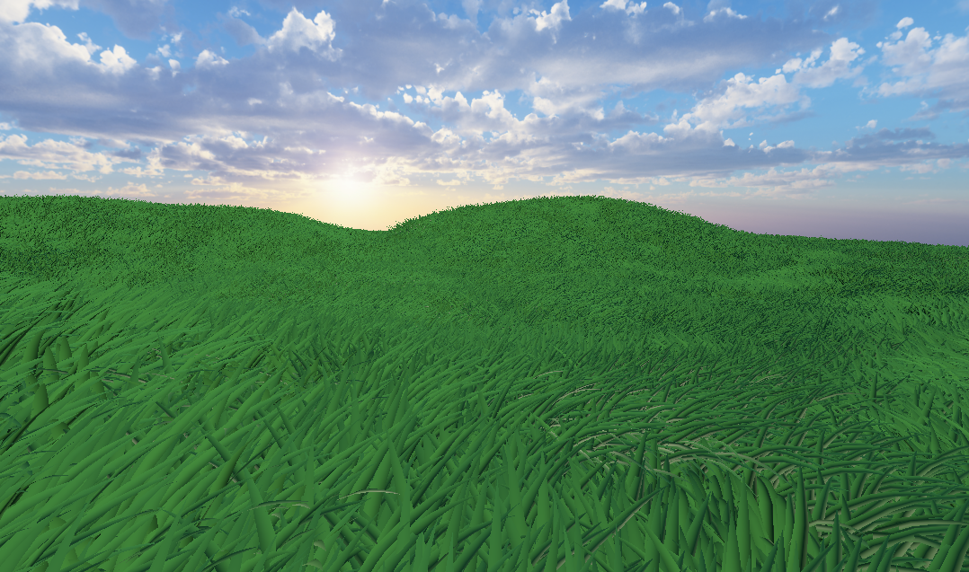 This is the project that I am currently working on. The goal was to utilize the GPU to create and animate realistic looking grass. All blades are created using Bezier curves which are dynamically animated by wind parameters. Several author parameters have been programmed to give me the exact kind of look I want from the blades. Progress on this has gone extremely well so far, and millions of grass blades can be in the scene at once while still maintaining 60fps. Most of what remains are visual improvements and post-processing effects.